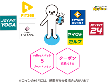 ※ゴールドコインがもらえるveBeeスポットやサービス券はプッシュ通知でお知らせします。